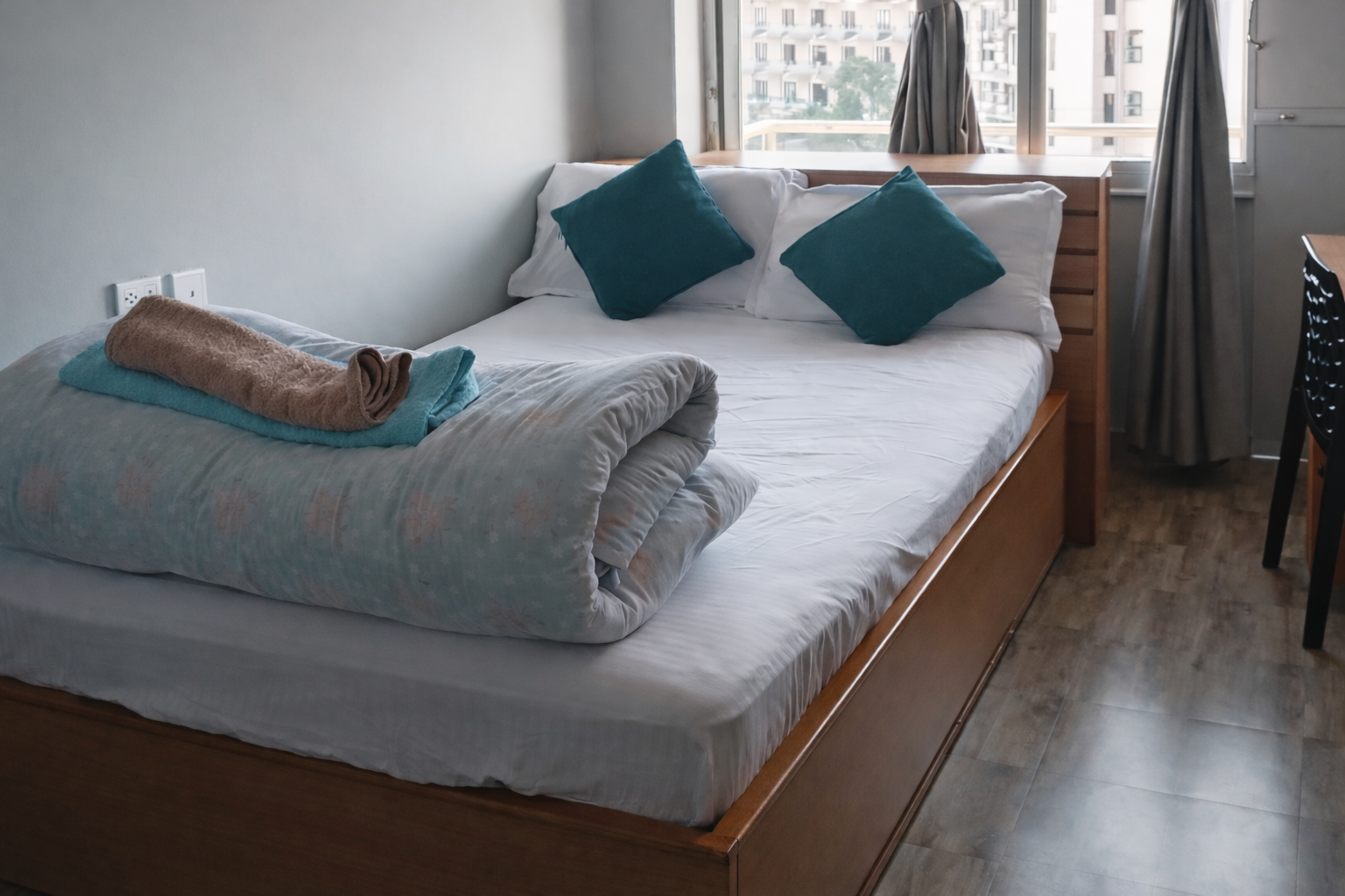 A peaceful retreat with a comfy bed, stylish decor, and personal space to relax, recharge, and unwind.